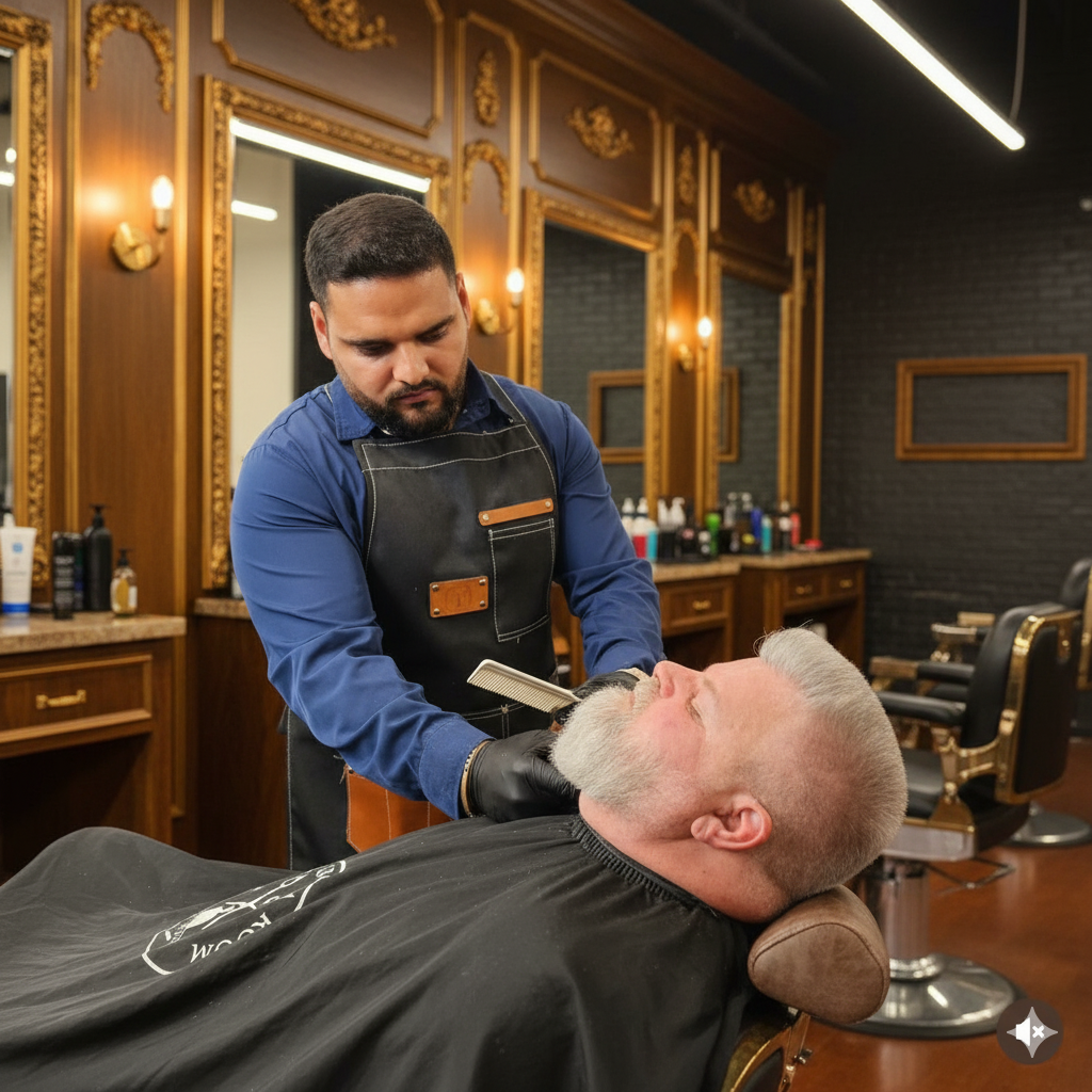Diseño detallado con perfilado preciso, degradados en las patillas y definición con navaja. Un servicio para quienes quieren una barba con forma, carácter y estilo.